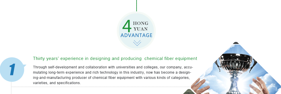 Jiangxi Hongyuan Machinery Limited company as the backbone of Jiangxi textile machinery plant after the reform of the enterprise is founded, chemical fiber design for nearly thirty years of manufacturing experience, the independent development and cooperation with domestic colleges and universities, has now become the chemical fiber equipment categories, varieties, complete specifications of the design and manufacture factory. With complete sets of technology of polyester, polypropylene, nylon fiber spinning process, engineering products. To undertake a variety of chemical fiber equipment (POY, FDY) design manufacture and transformation, and assist users engaged in market research, plan, plant planning, equipment installation and commissio...